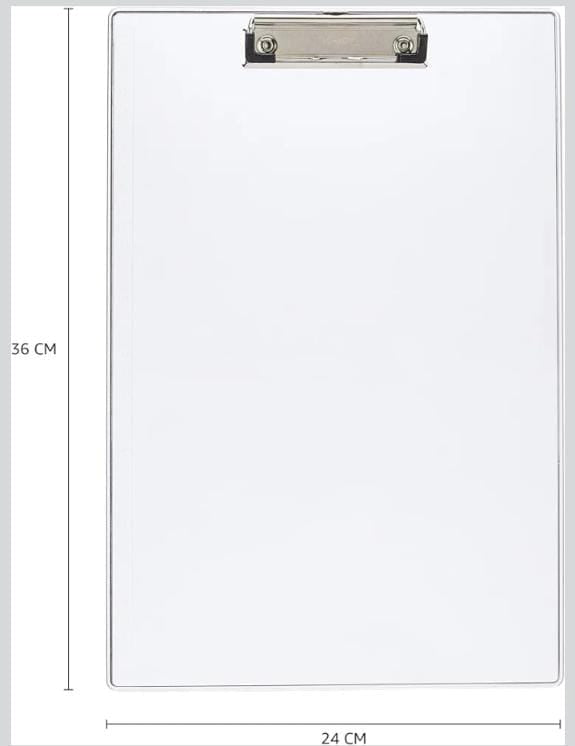 A sleek transparent clipboard designed for students, professionals, and everyday use. Its clear finish gives a modern look while allowing the surface beneath to show through. Lightweight yet sturdy, it securely holds papers for writing, exams, meetings, or presentations.