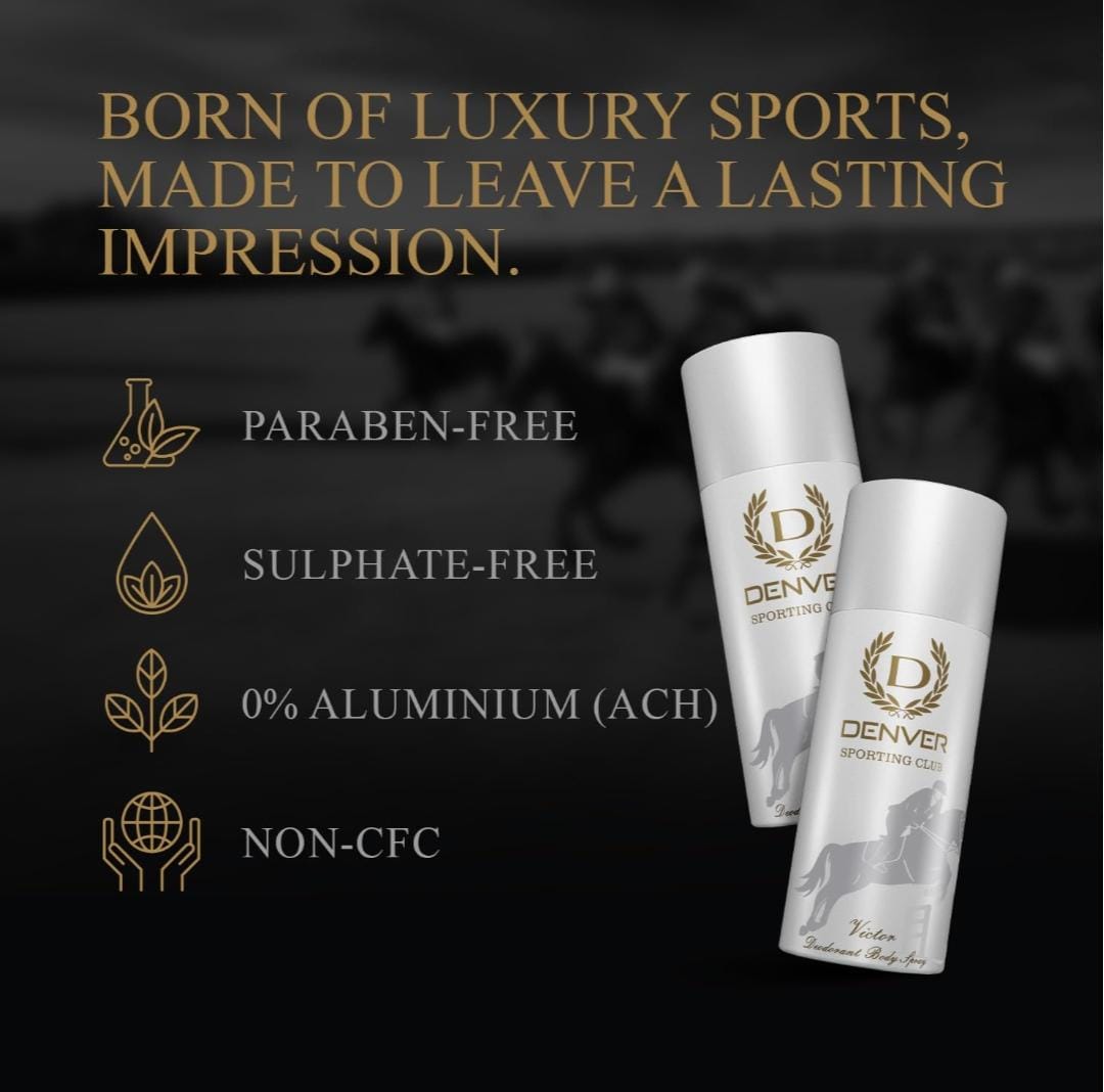 Denver VICTOR SPORTING CLUB perfume is a long-lasting, spicy, and woody fragrance for men that provides a fresh, masculine scent, boosts confidence, and masks body odor, making it ideal for everyday wear and special occasions. It features notes of green, cedarwood, Italian lemon, and amber, creating an enduring and soothing aroma.