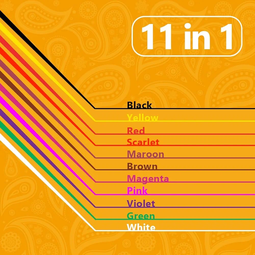 Vibrant Colours: Eyetex Divyaa Kumkum 11 in 1 offers a wide range of colors including Maroon, Brown, Red, Black, White, Yellow, Green, Pink, Violet, Magenta, and Scarlet, allowing for versatile use in various occasions.
