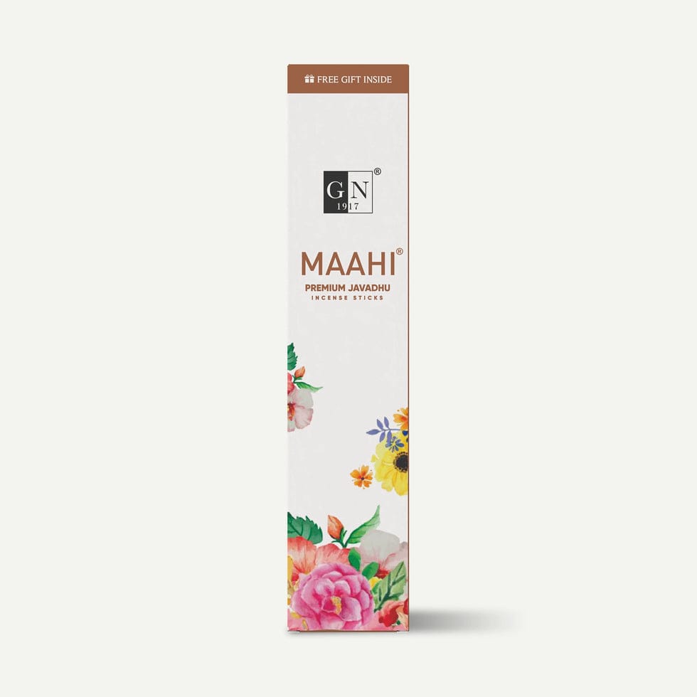 GN Maahi premium javadhu products are made with a blend of natural javadhu fragrance, musk, amber, and herbs, without charcoal, and are used for spiritual purposes like pooja and meditation or to create a calming atmosphere.
