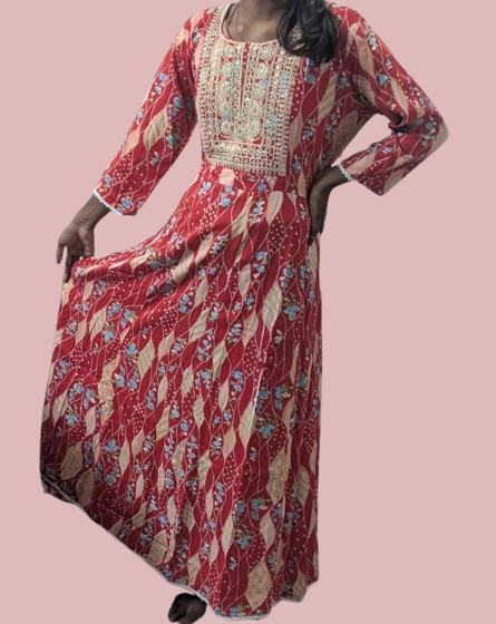 Wowen Annerkali-kurta women printed rayon blend kurti with premium quality febric Brings to You This Printed Ethnic Anarkali Kurta in Red, Superfine Gold Printed, Made With Cotton blend Fabric Provides all Day long Comfort regular kurta, Full Stitched women dress & Well Finished flared kurta. This stunning Dress is Handcrafted in Jaipur & Designed for Festive Parties, Social gatherings/Important Occasions Gives You a Complete Traditional Outlook and Help you to be Easy on the eye.premium Quality Febrieck rayon blend